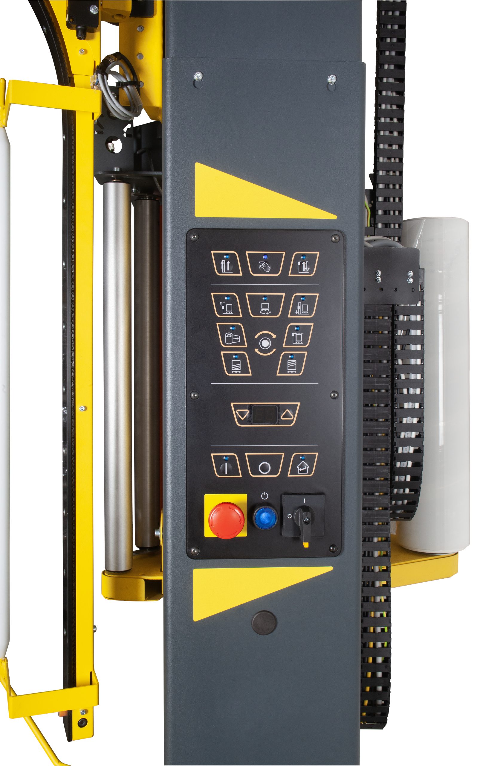 - Stor display med tvåsiffrig visning av parametrar som hastighet, antal slingor, filmspänning, överlindning, tider, nedstigningsnivå för toppark samt felkodsvisning.